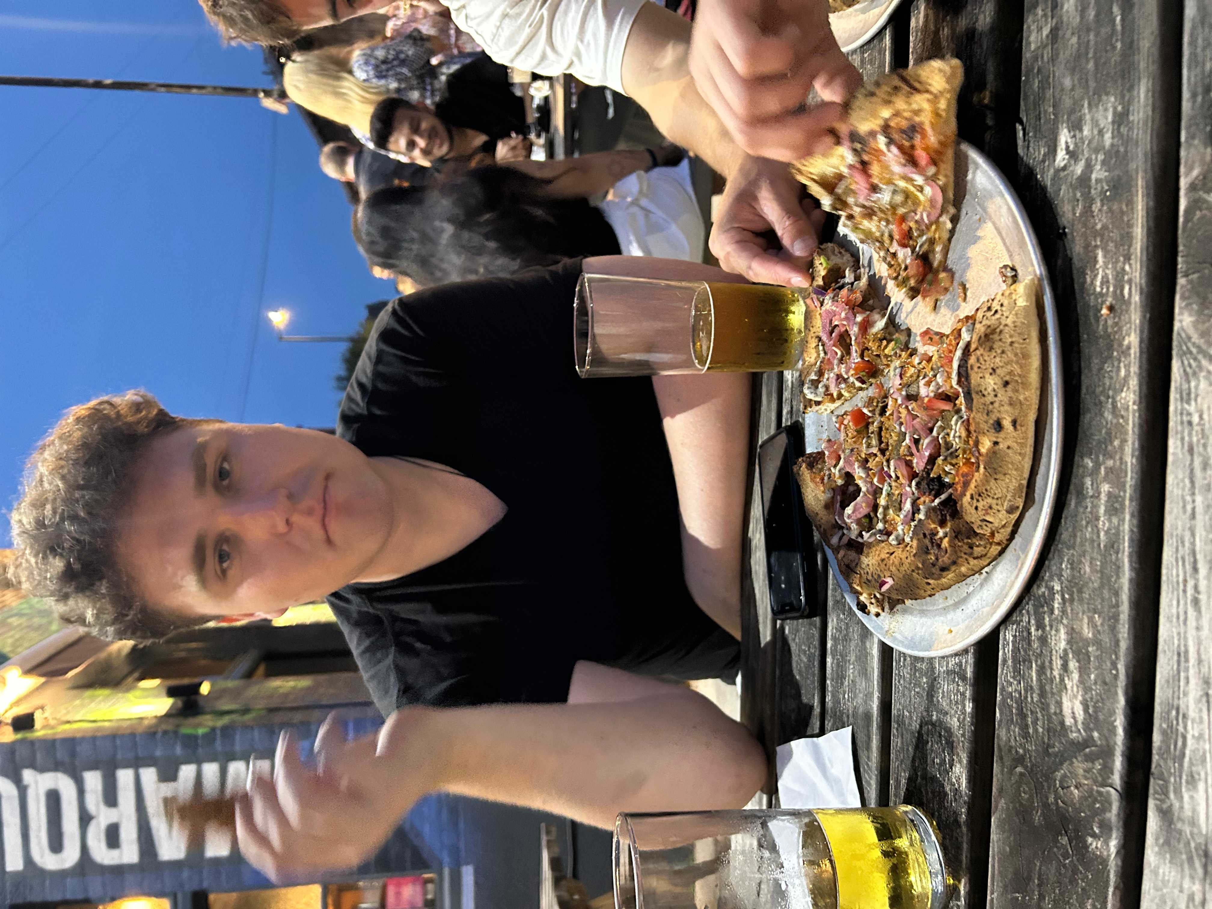 A pub-style pizza featuring a blistered, charred crust topped with savory pulled meat, fresh red onions, tomatoes, and a creamy garlic drizzle. This recipe recreates the smoky flavor and messy indulgence of the pizza shown in the image.