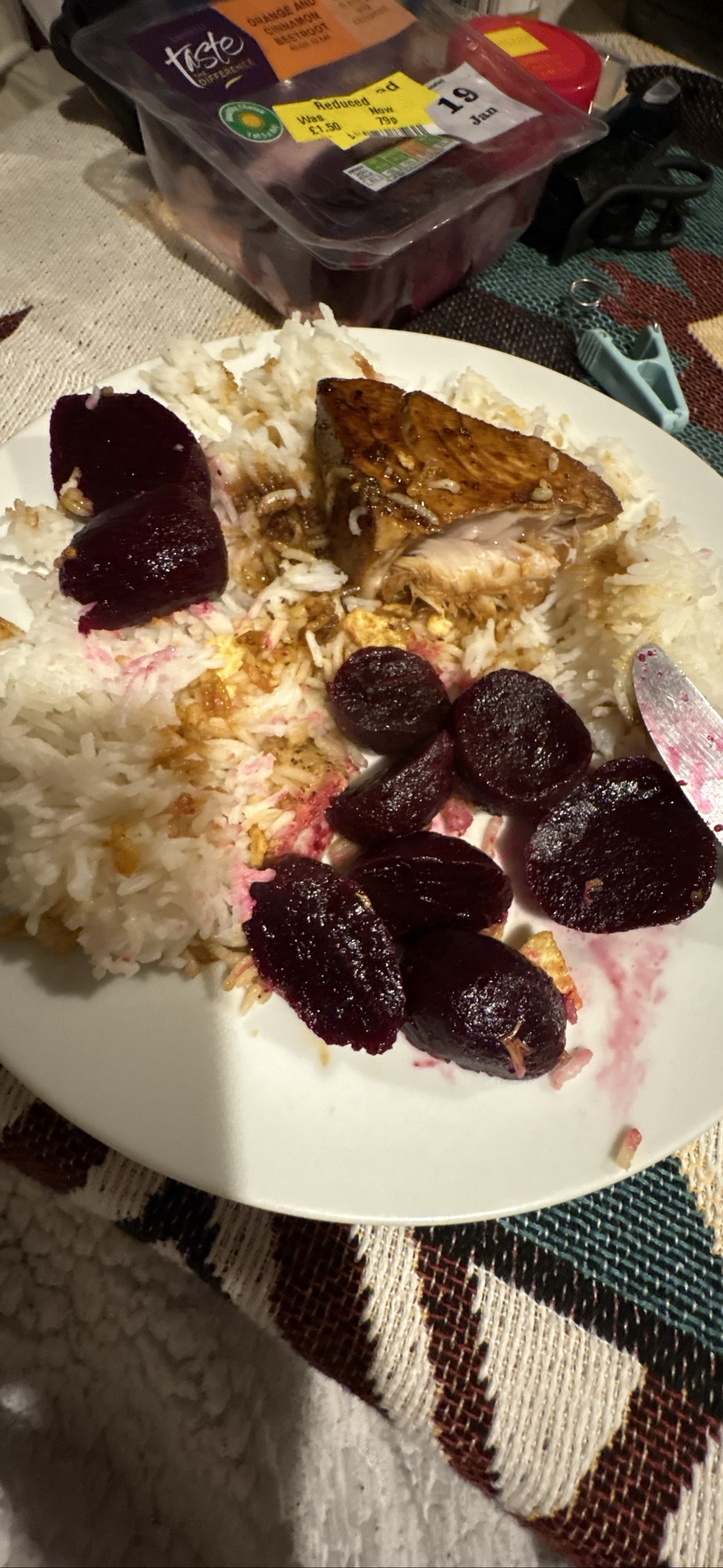 A nutritious and flavorful meal featuring pan-seared tuna steak served alongside sweet and aromatic beetroot infused with orange and cinnamon, all resting on a bed of fluffy white rice. Inspired by the convenience of pre-marinated beetroot, this recipe shows you how to recreate those savory-sweet flavors at home.