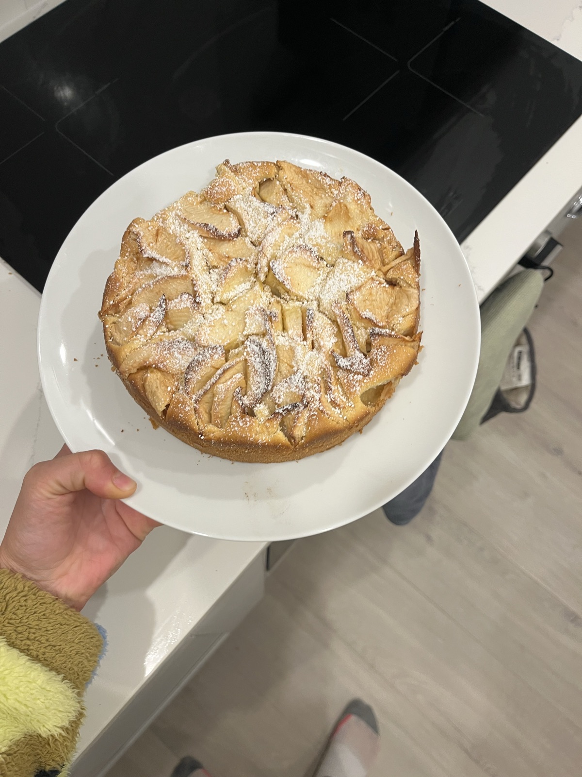 It’s not Dorset apple cake! I won’t hear it! 400g of apples Normal cake for a vicky s. Except the sugar. Unlike my normal baking this is 1 tablespoon of sugar! Sometimes I remember that teeth matter. Yet again home grown apples! Bake for 30 at180