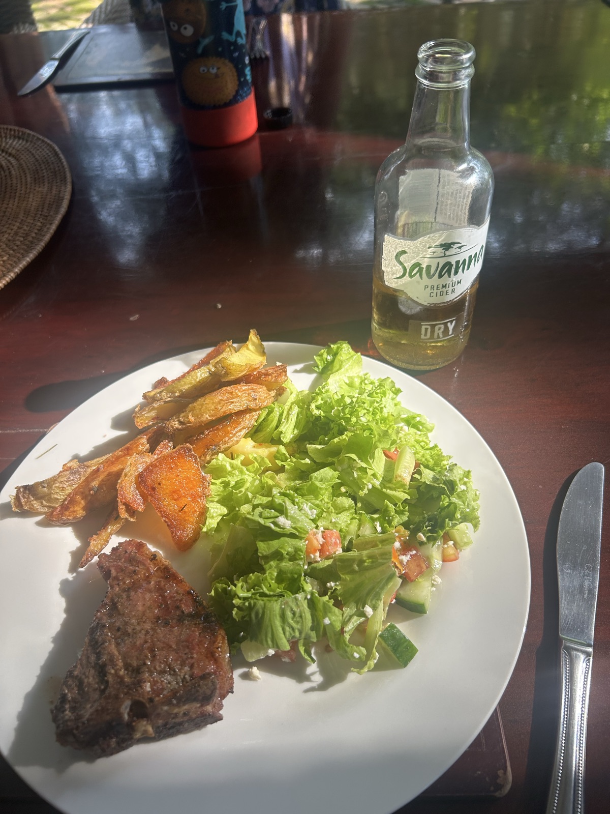 T bones, lamb chops, bourewors, peri peri chicken, salad and lemon grass crispy potatoes