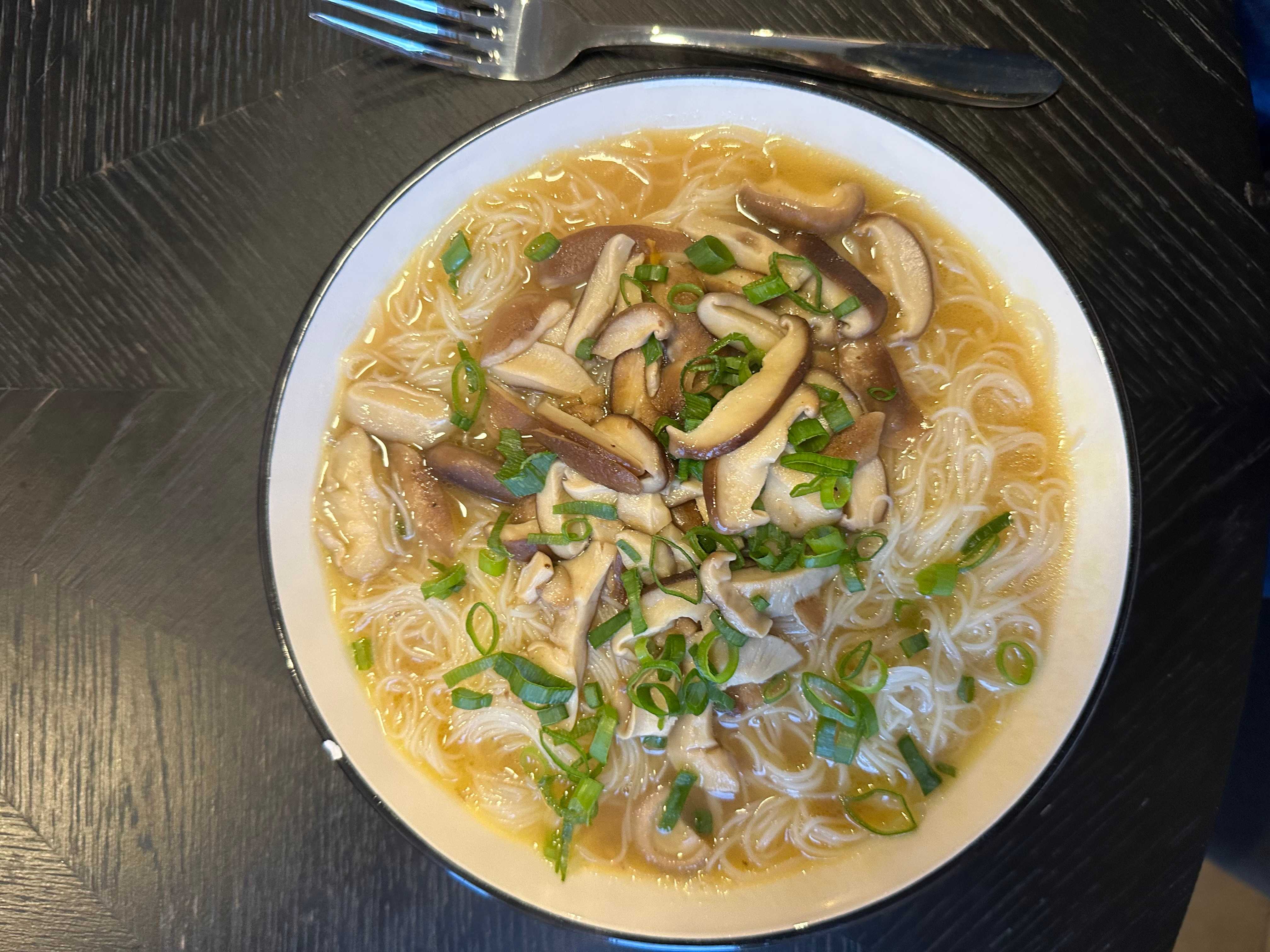 A comforting and light noodle soup that highlights earthy mushrooms and tender rice vermicelli. This quick, one-pot meal features a flavorful clear broth and is topped with fresh green onions for a pop of color and bite. Perfect for a cozy lunch or light dinner.