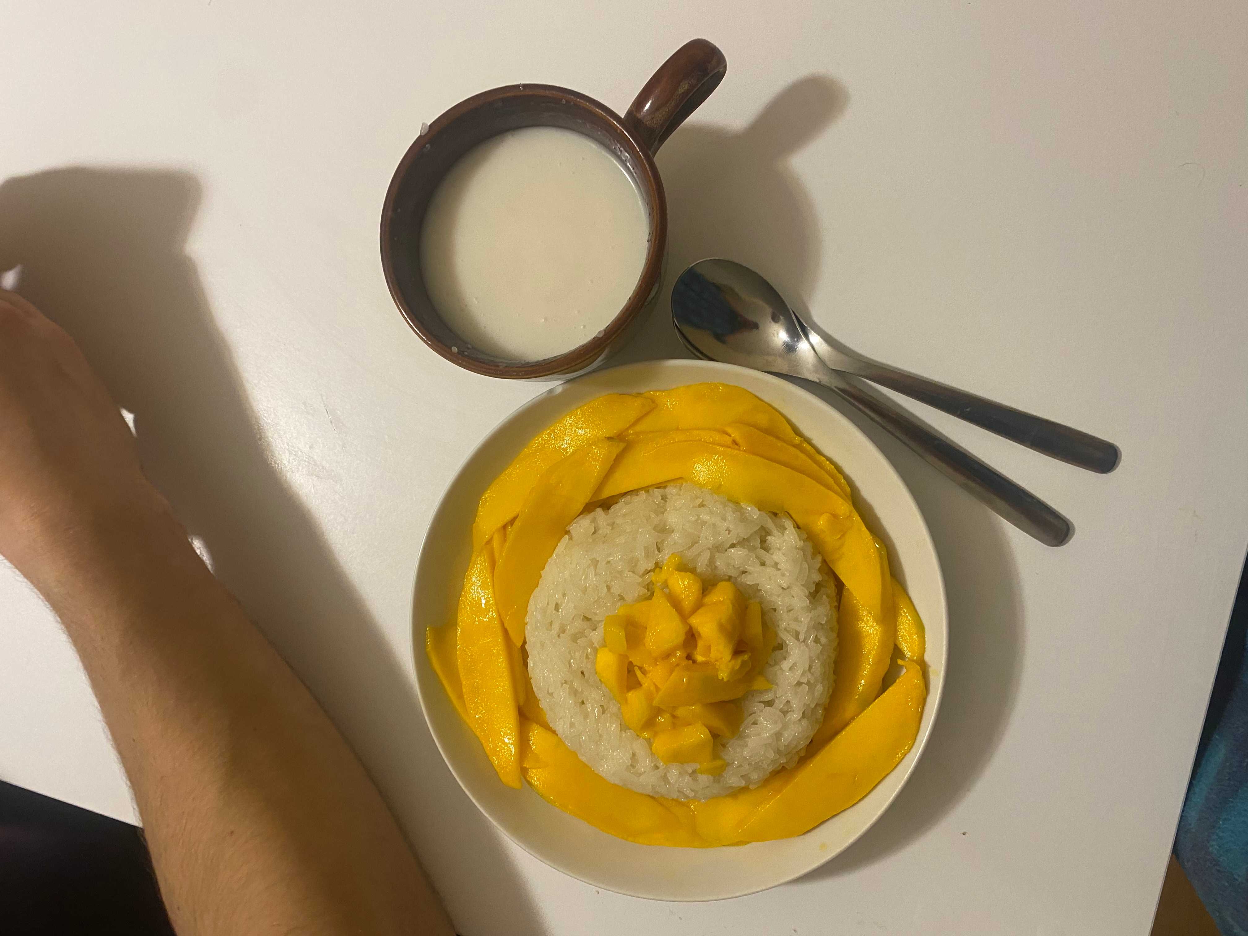 A classic and beloved Thai dessert (Khao Niew Mamuang) featuring sweet, chewy glutinous rice paired with fresh, ripe mango slices. The dish is brought together by a rich, salty-sweet coconut cream sauce. Based on your image, this recipe includes instructions for both the sliced mango arrangement and the diced mango topping.