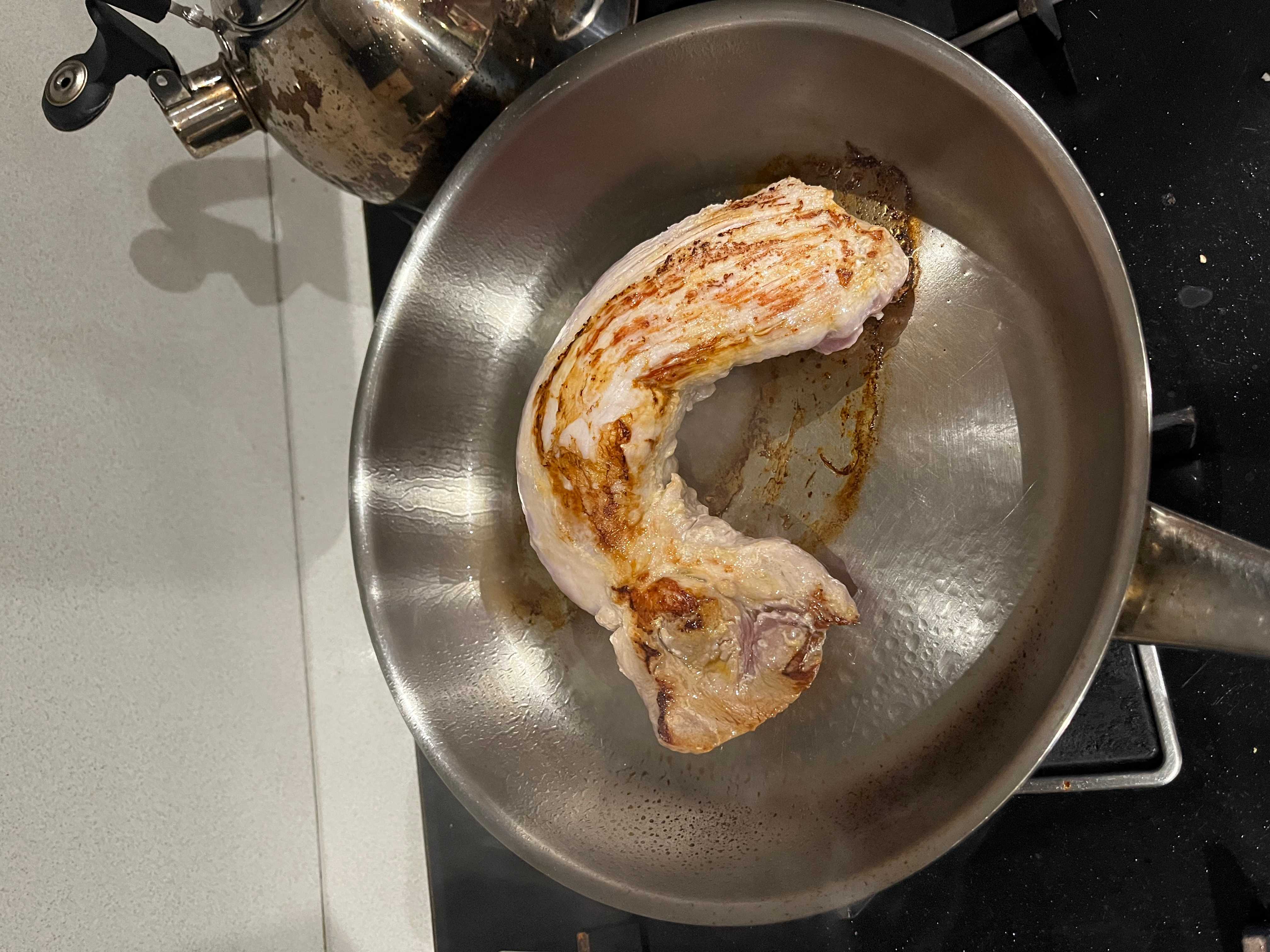A robust and straightforward 'boy dinner' featuring a perfectly seared whole pork tenderloin served alongside rustic sourdough toast topped with fresh tomatoes and balsamic vinegar. This meal strikes a balance between simple preparation and satisfying, savory flavors.