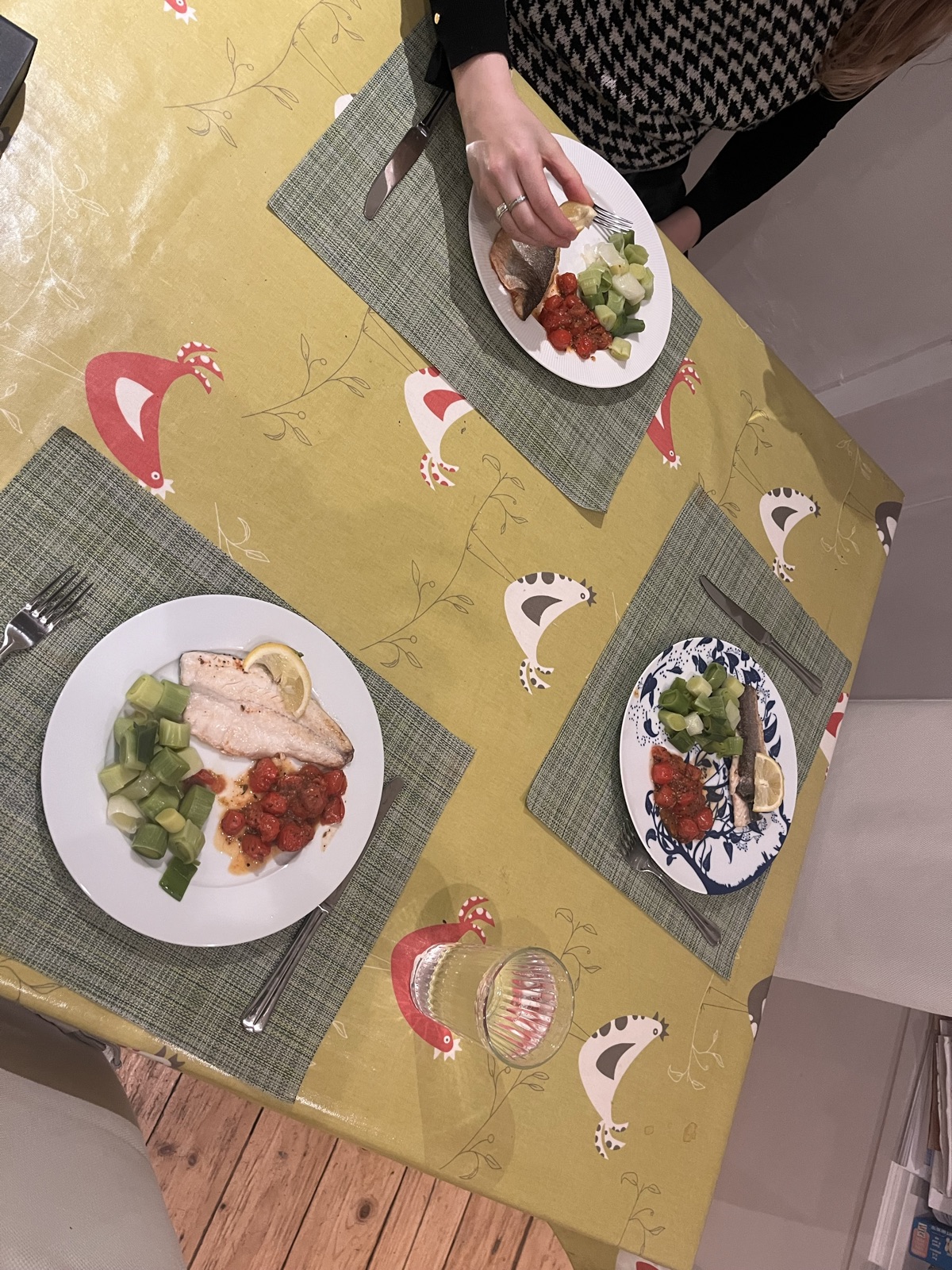 ← all recipessea bass, steamed leaked and pan fried tomato’s , also had potato’s (boiled) not featured