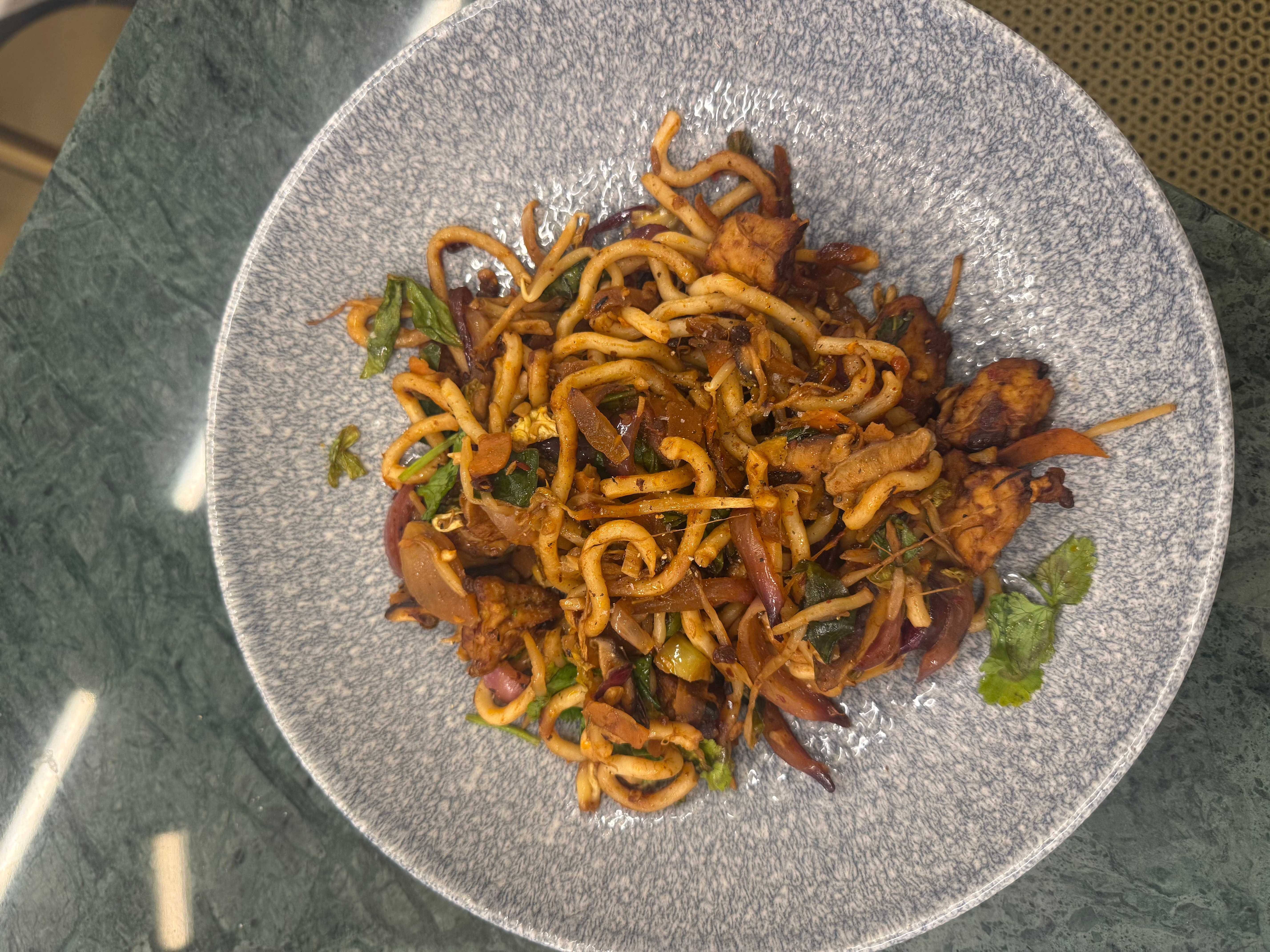 A delicious and rapid stir-fry featuring thick, chewy udon noodles tossed with tender chicken chunks, red onions, and greens. Coated in a savory, slightly spicy soy and oyster sauce glaze, this dish delivers bold flavors in under 20 minutes—perfect for a satisfying weeknight meal.
