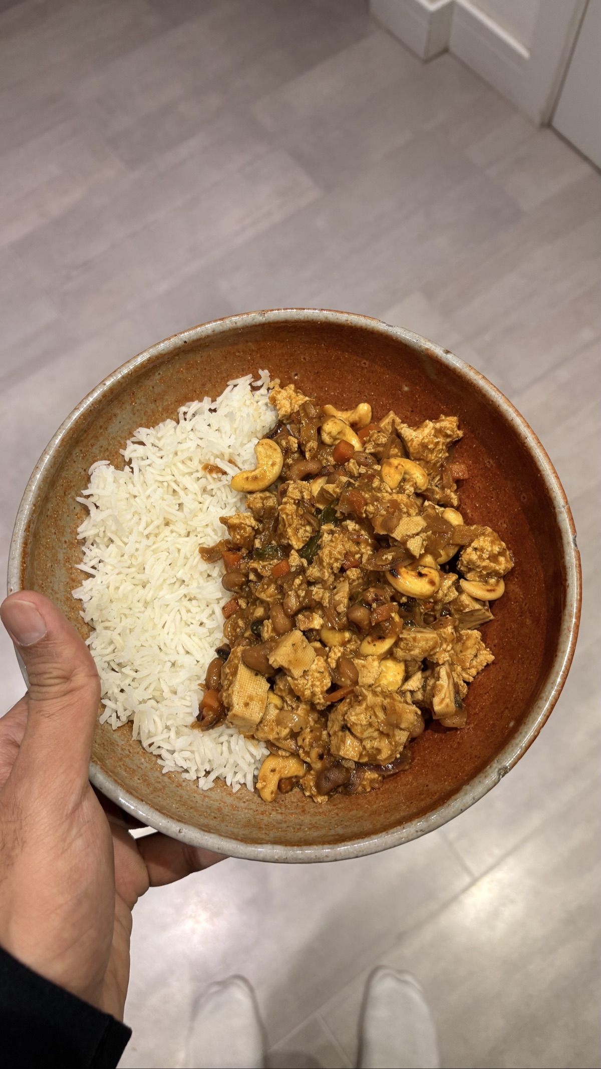 Tofu, cashews, and black-eyed beans are a great combination because together they provide a broad range of essential amino acids, making for a more complete plant-based protein than any one of them would alone. The beans bring complex carbohydrates and soluble fiber for sustained energy and gut health, tofu adds a clean protein base with healthy fats, and cashews contribute healthy monounsaturated fats along with minerals like magnesium and zinc