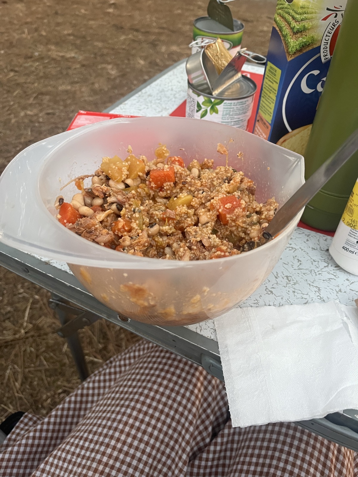 This is the best meal u could ask for It’s cheap It’s easy! It’s high in protein And it tastes amazing if you have kites for 4- 6 hours All you need. Is couscous, cold water , a tin of beans, a tin of veg and a tin of fish. Whack that all in a bowel, leave for 30. Come back and demolish. Top tip DO NOT LEAVE OUT IN THE SUN. Can end up rancid but still edible.