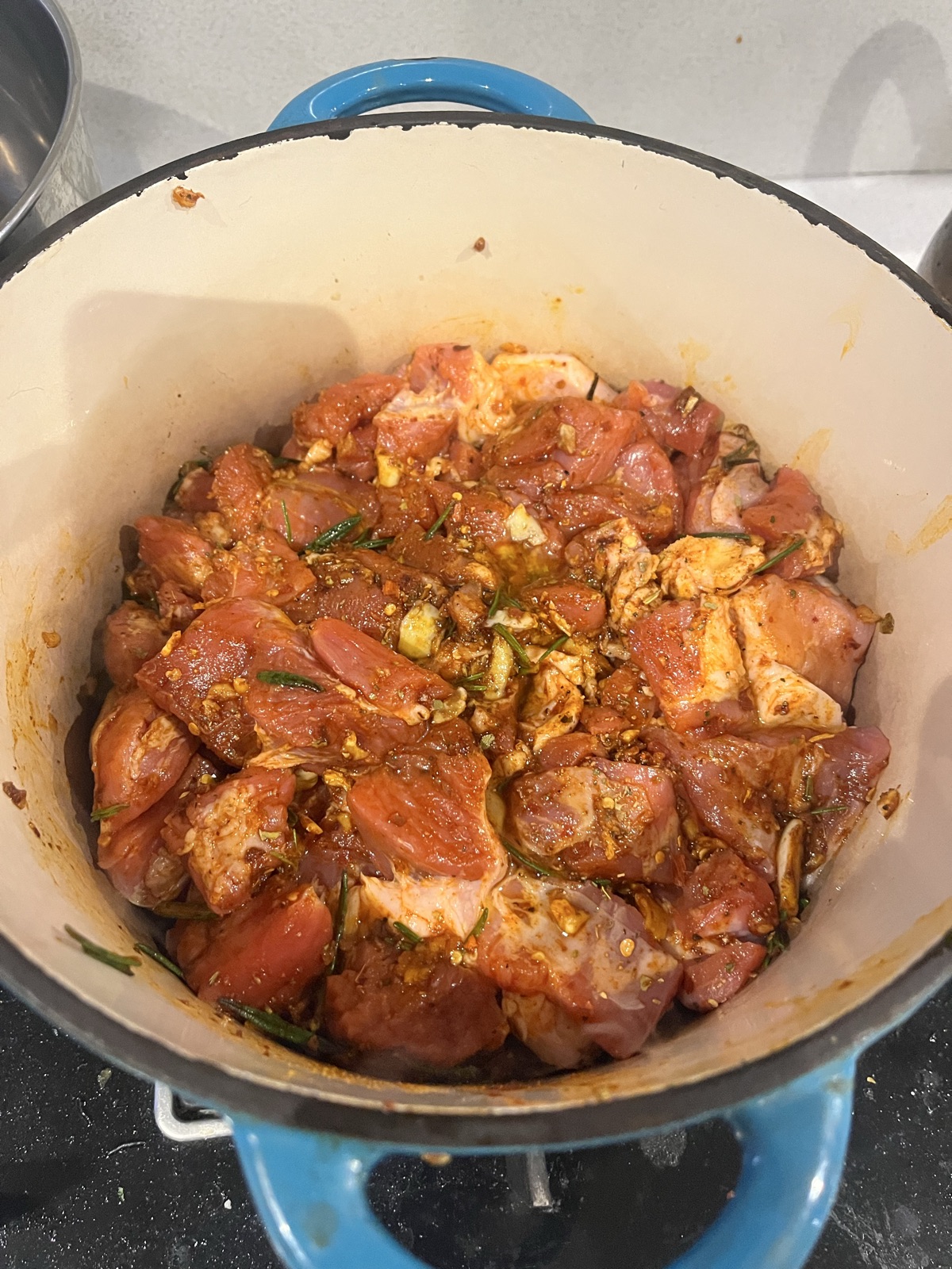 Paprika and rosemary pork belly, mash, fennel and celeriac, Brussels sprouts and chard