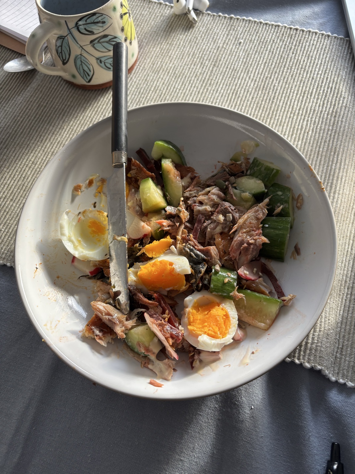 A nutritious, high-protein salad perfect for a quick work-from-home lunch. This dish combines rich, flaky smoked mackerel with soft-boiled eggs and crisp vegetables for a satisfying meal that comes together in under 20 minutes.