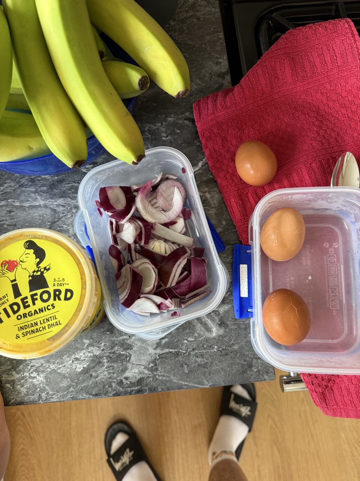 onion soup, ham, egg w ketchup