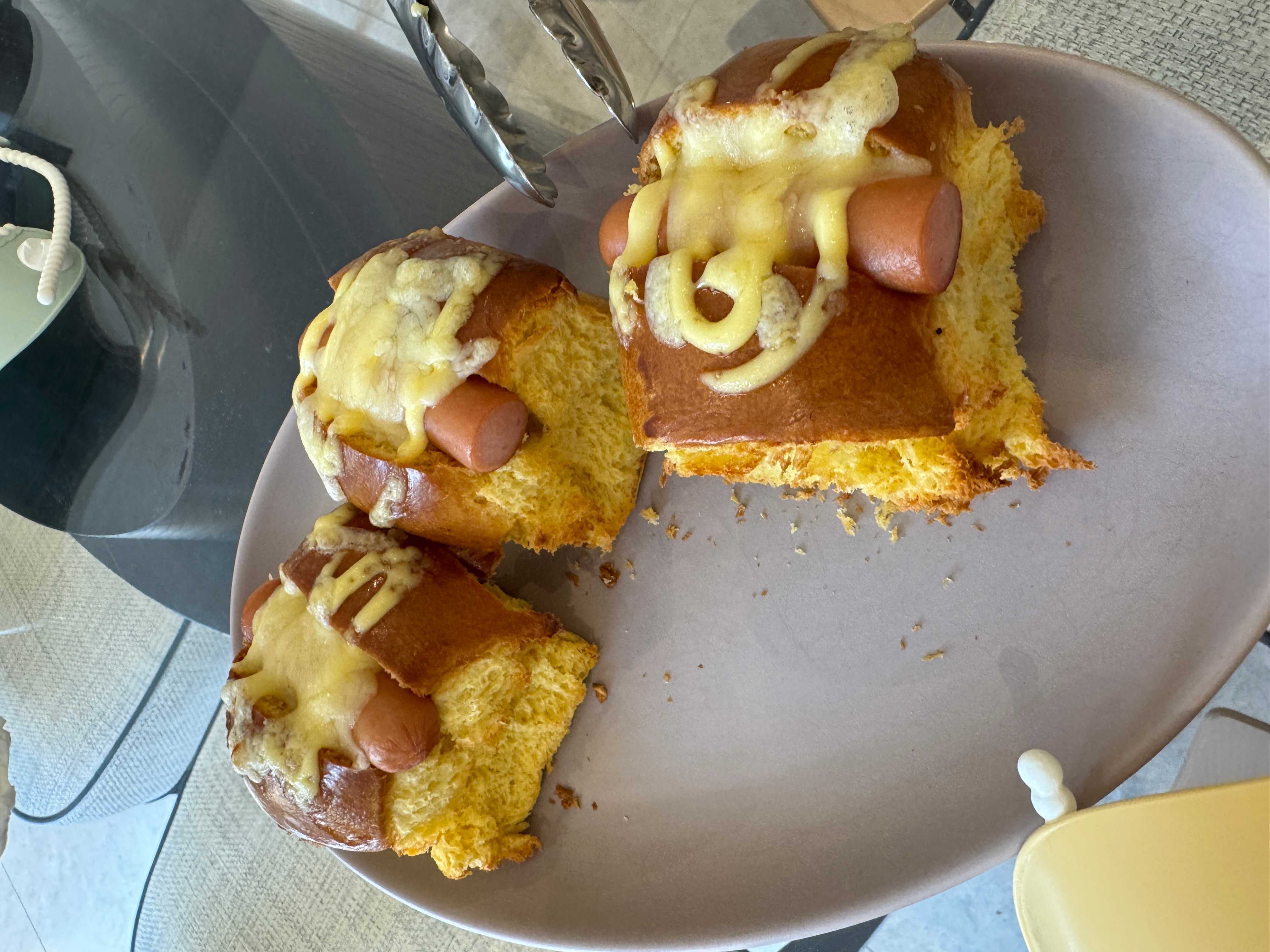hong kong style brioche breakfast duo: sausage melt & cream buns