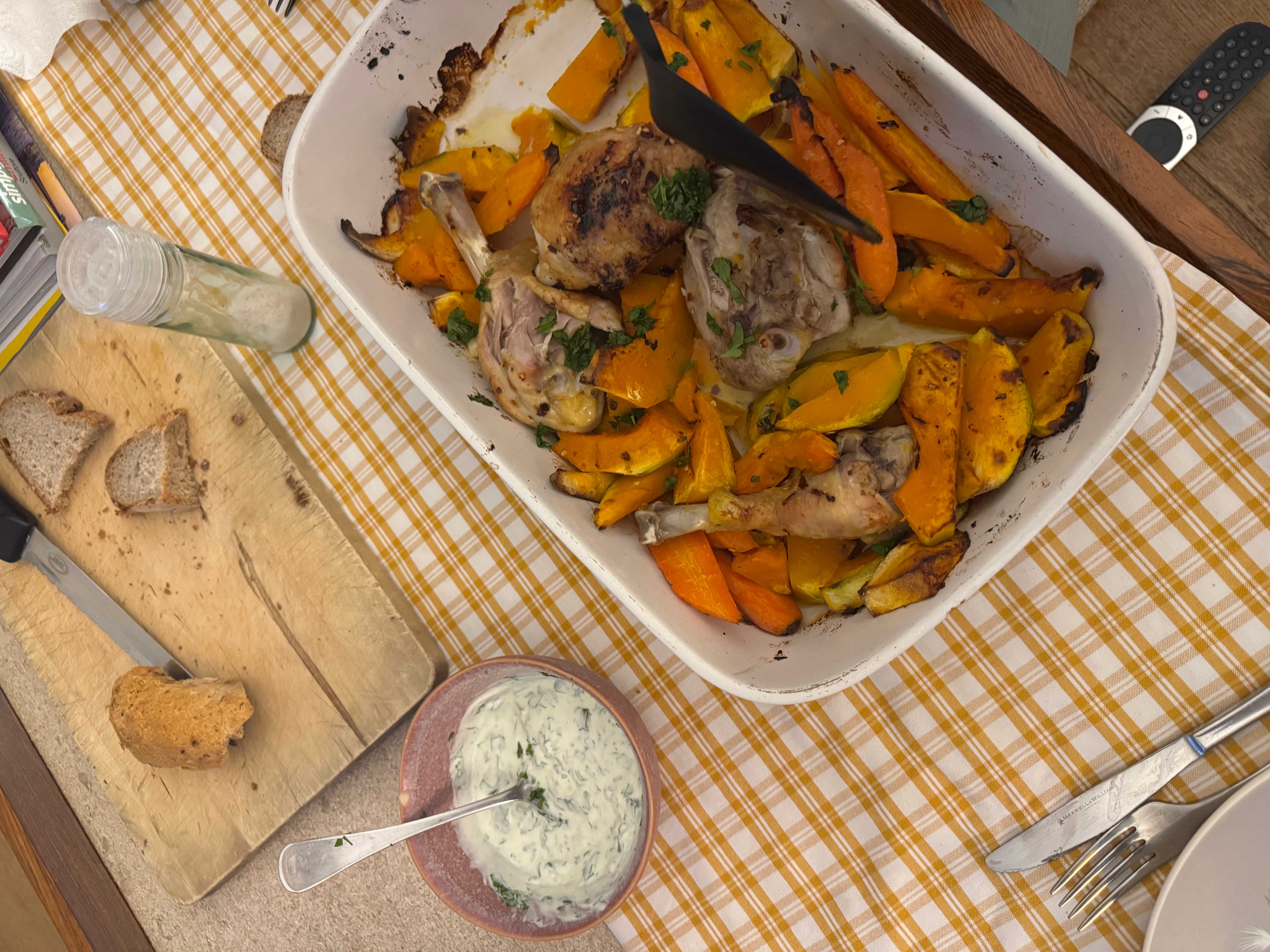 simple roasted chicken & squash traybake with coriander yoghurt