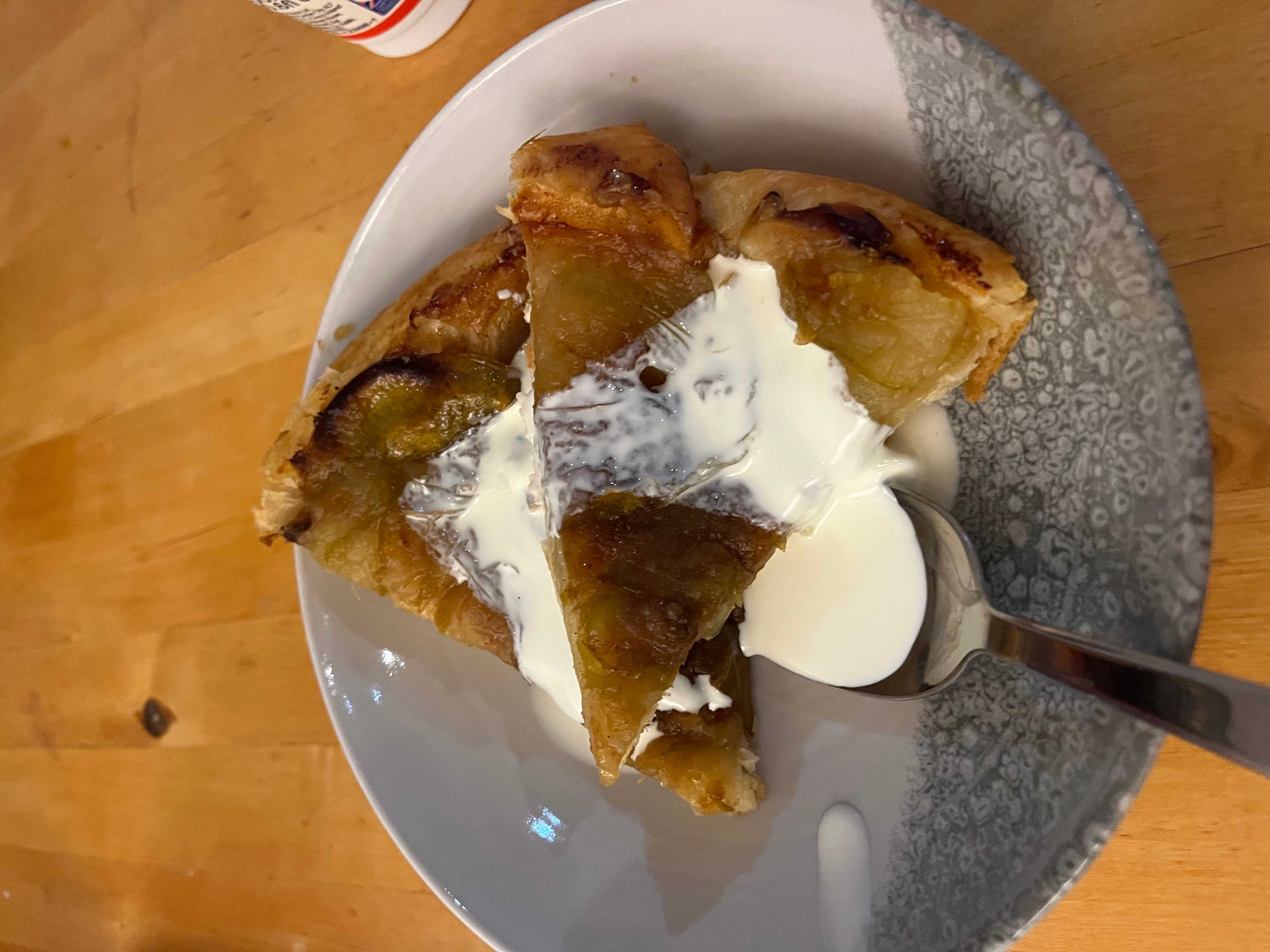 A simplified version of the classic French upside-down tart. This recipe uses sliced apples caramelized directly in the skillet with butter and sugar, topped with a golden puff pastry crust. Flipping it reveals the beautiful, glossy caramelized fruit. Best served warm with a dollop of crème fraîche or double cream.