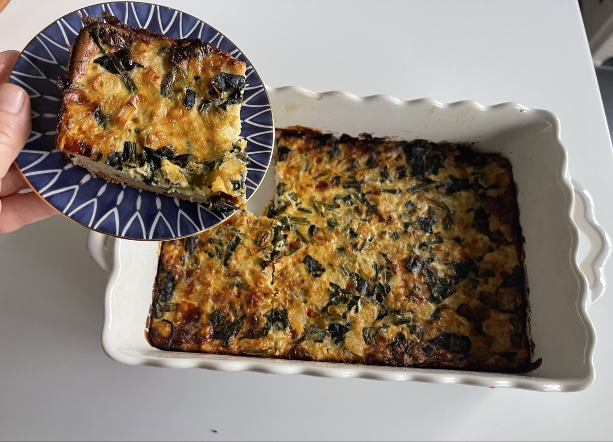 A hearty, savory tray bake featuring a soft, biscuit-like dough base topped with a generous filling of sautéed leeks, spinach, and onions, bound together with a lactose-free milk custard and tangy white cheese. This dish takes inspiration from Turkish cuisine, utilizing ingredients like 'Beyaz Peynir' (white cheese) and yogurt-enriched dough.