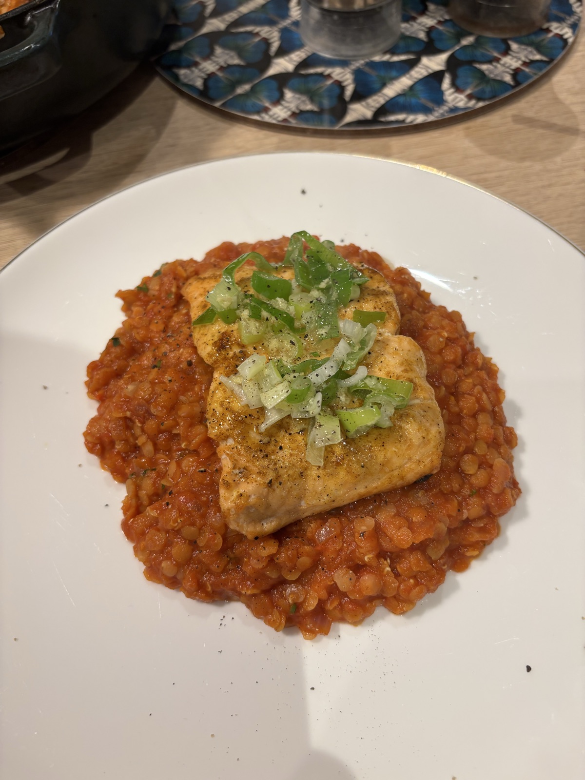 scotch bonnet lentils and salmon