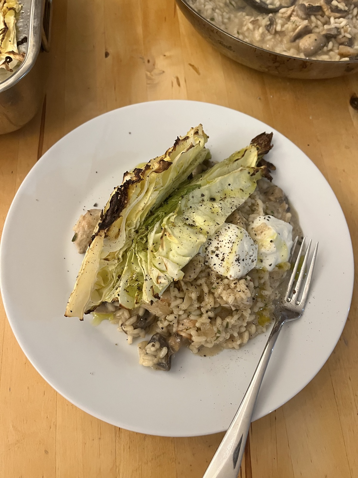 Chicken and mushroom no cheese but with cream fraiche AND OBVS Cabbage